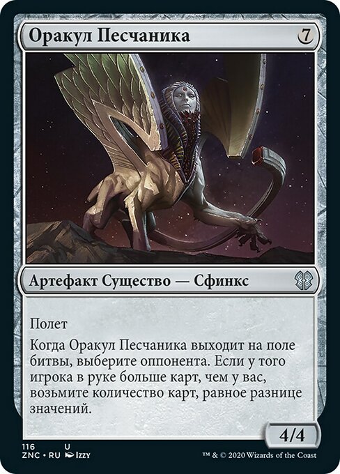 ![]() Variations— Parts— | Oráculo de Arenito4 / 4 Voar Quando Oráculo de Arenito entrar no campo de batalha, escolha um oponente. Se aquele jogador tiver mais cards na mão do que você, compre um número de cards igual à diferença.