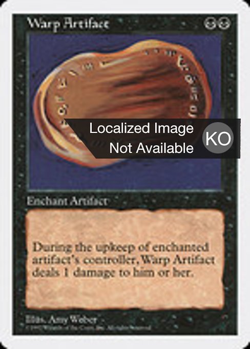 ![]() Variations— Parts— | Warp ArtifactEnchant artifact At the beginning of the upkeep of enchanted artifact's controller, this Aura deals 1 damage to that player.