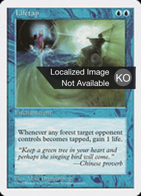 ![]() Variations— Parts— | LifetapWhenever a Forest an opponent controls becomes tapped, you gain 1 life.