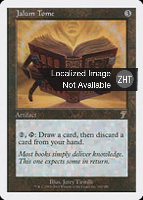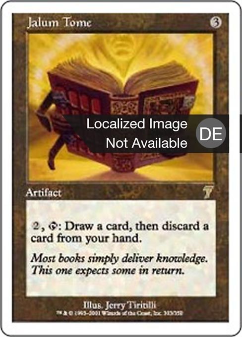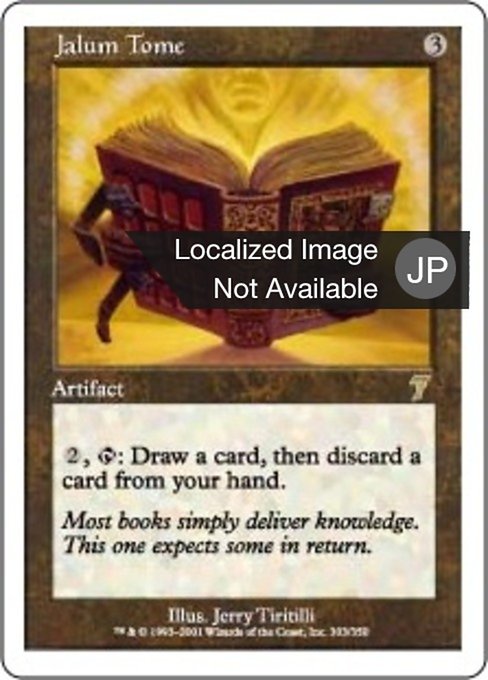 LegalitiesLegal Duel Brawl Penny Predh Legacy Pauper Vintage Historic Timeless Commander Gladiator Premodern Oathbreaker Paupercommander Not Legal Future Modern Alchemy Pioneer Standard Oldschool Standardbrawl RulingsYou draw a card and discard a card all while Jalum Tome's ability is resolving. Nothing can happen in between, and no player can choose to take actions.