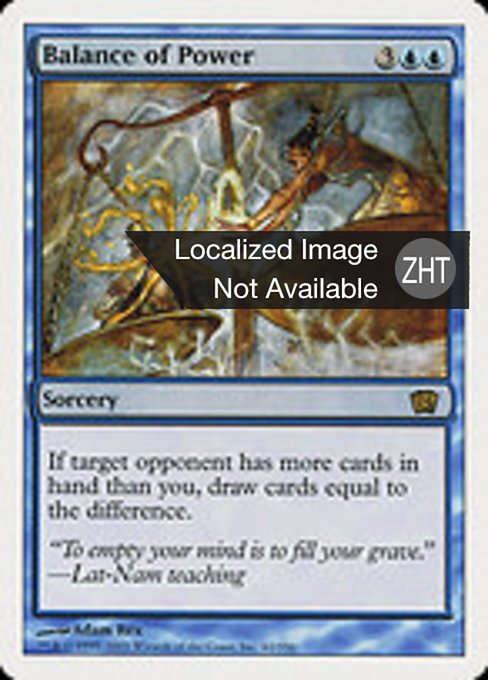 ![]() Variations— Parts— | Balance of PowerIf target opponent has more cards in hand than you, draw cards equal to the difference.