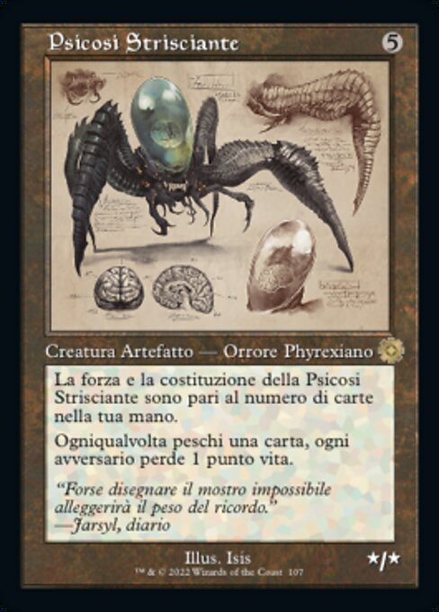 |  Variations— Parts— | Psicosi Strisciante* / * La forza e la costituzione della Psicosi Strisciante sono pari al numero di carte nella tua mano. Ogniqualvolta peschi una carta, ogni avversario perde 1 punto vita.