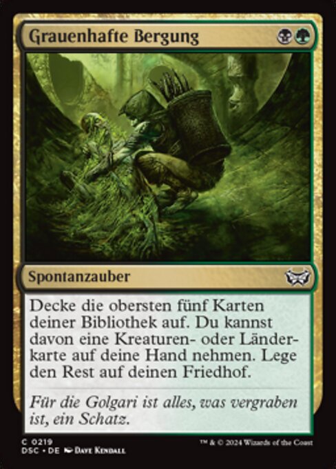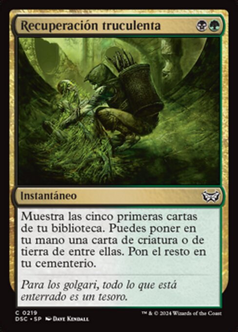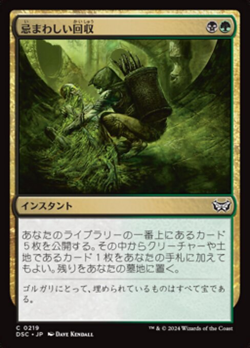 |  Variations— Parts— | Recupero RaccapriccianteRivela le prime cinque carte del tuo grimorio. Puoi aggiungere alla tua mano una carta creatura o terra scelta tra esse. Metti le altre nel tuo cimitero.