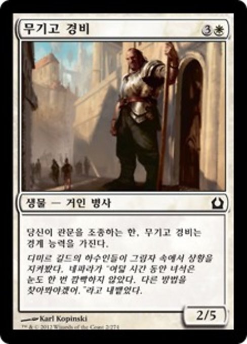 |  Variations— Parts— | Guardia dell'Armeria2 / 5 La Guardia dell'Armeria ha cautela fintanto che controlli un Cancello.