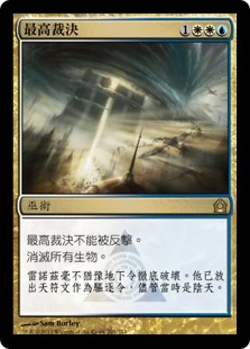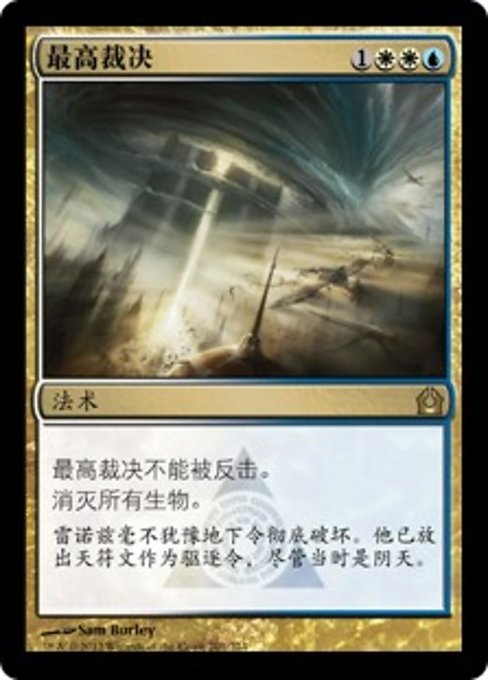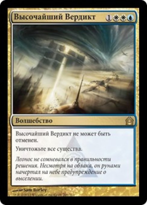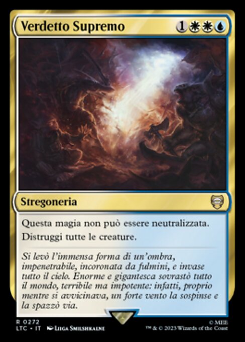 |  Variations— Parts— | Verdetto SupremoIl Verdetto Supremo non può essere neutralizzato. Distruggi tutte le creature.