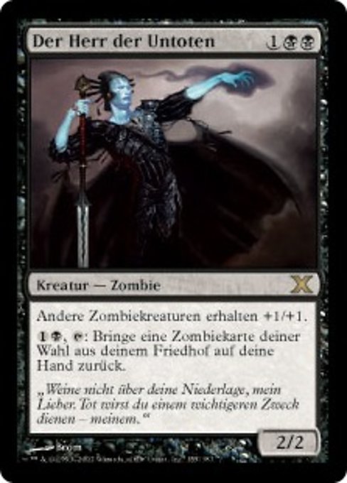 LegalitiesLegal Duel Brawl Penny Predh Legacy Modern Vintage Historic Timeless Commander Gladiator Premodern Oathbreaker Not Legal Future Pauper Alchemy Pioneer Standard Oldschool Standardbrawl Paupercommander RulingsLord of the Undead now has the Zombie creature type and its first ability has been reworded to affect *other* Zombies. This means that if two Lord of the Undead are on the battlefield, each gives the other a bonus.