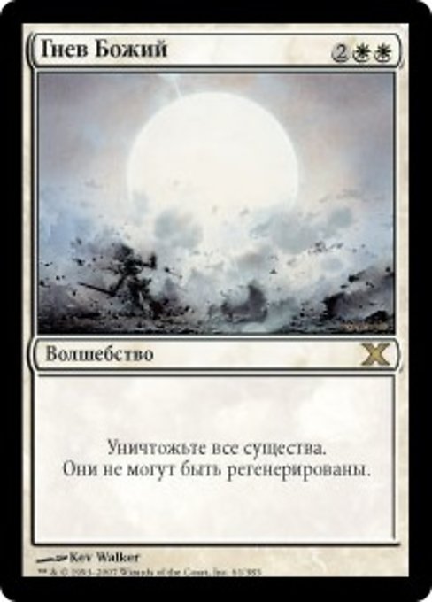 |  Variations— Parts— | Colère de DieuDétruisez toutes les créatures. Elles ne peuvent pas être régénérées.