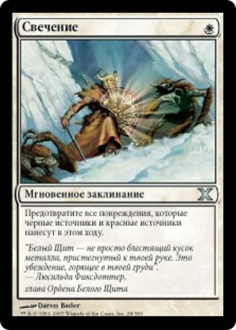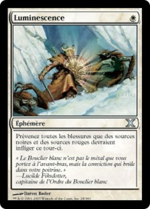 |  Variations— Parts— | LuminescenzaPrevieni tutto il danno che le fonti nere e le fonti rosse infliggerebbero in questo turno.