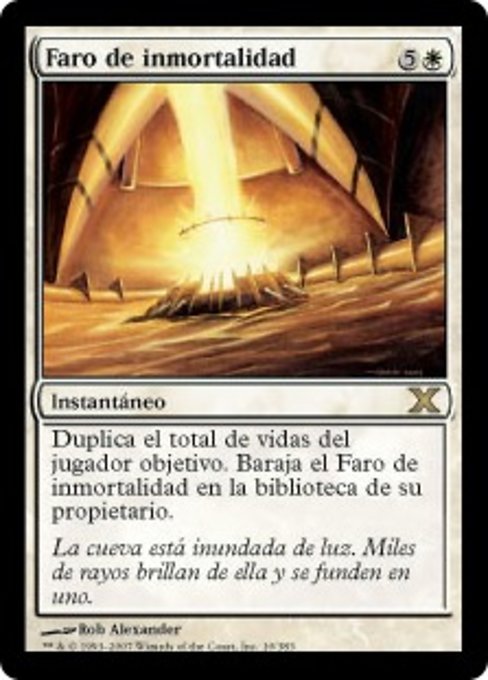 ![]() Variations— Parts— | 不死の標プレイヤー1人を対象とし、そのプレイヤーのライフの総量を2倍にする。 不死の標をオーナーのライブラリーに加えて切り直す。