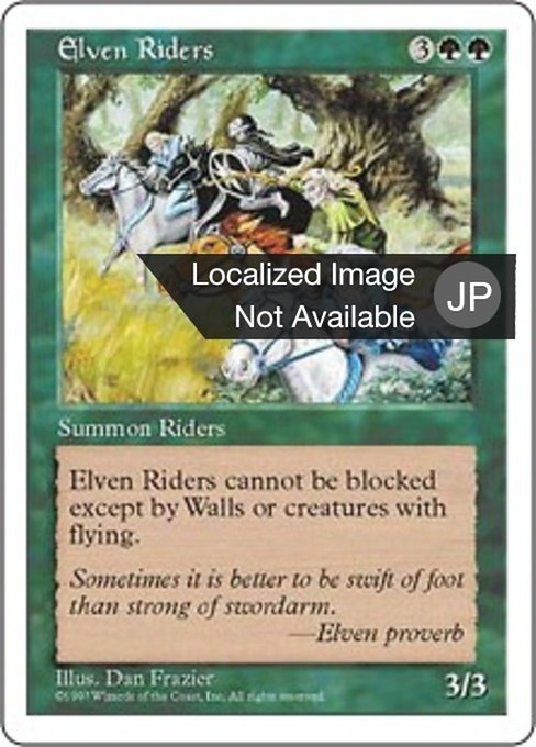 |  Variations— Parts— | エルフの騎手3 / 3 エルフの騎手は、壁か飛行を持つクリーチャー以外にはブロックされない。