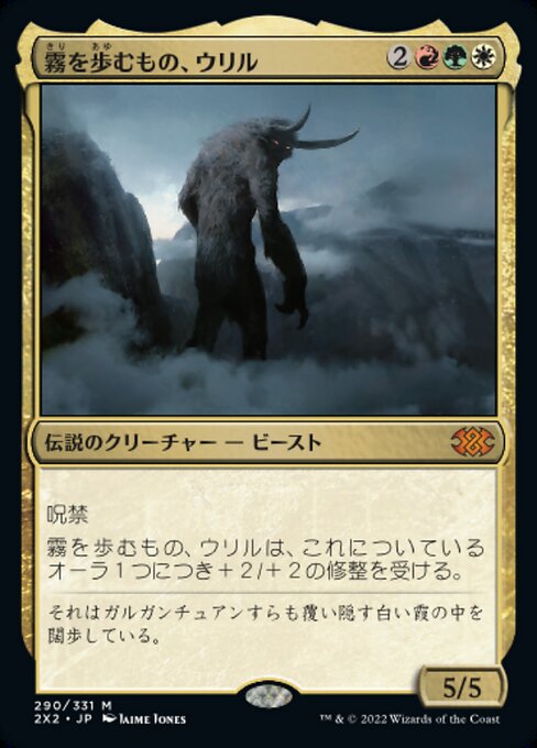 ![]() Variations : 1Parts— | Uril, the Miststalker5 / 5 Hexproof (This creature can't be the target of spells or abilities your opponents control.) Uril gets +2/+2 for each Aura attached to it.