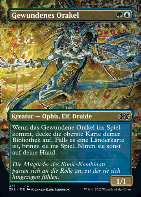 ![]() Variations : 1Parts— | Coiling Oracle1 / 1 When this creature enters, reveal the top card of your library. If it's a land card, put it onto the battlefield. Otherwise, put that card into your hand.