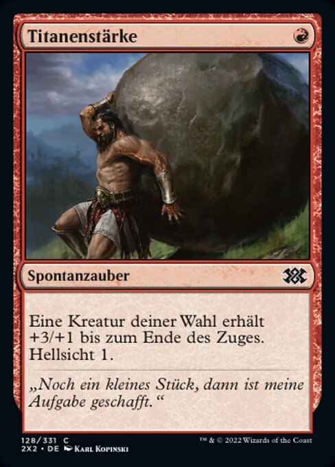 |  Variations— Parts— | Force de titanUne créature ciblée gagne +3/+1 jusqu'à la fin du tour. Regard 1.