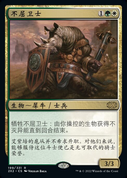 ![]() Variations : 1Parts— | Escorte intrépide3 / 3 Sacrifiez l'Escorte intrépide : Les créatures que vous contrôlez acquièrent l'indestructible jusqu'à la fin du tour.
