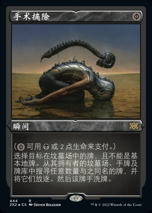 |  Variations : 2Parts— | 外科的摘出( 墓地にあり基本土地・カードでないカード1枚を対象とする。それのオーナーの墓地と手札とライブラリーから、そのカードと同じ名前を持つ望む枚数のカードを探し、それらを追放する。その後、そのプレイヤーはライブラリーを切り直す。