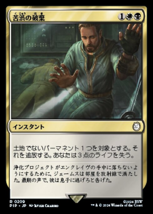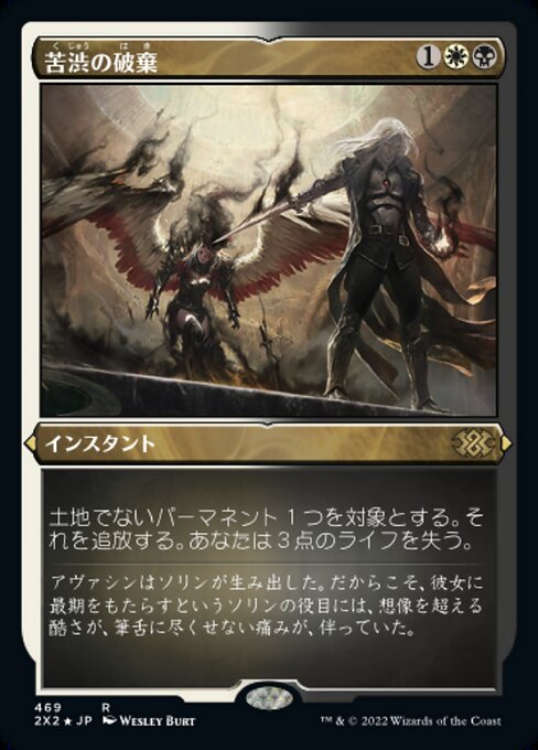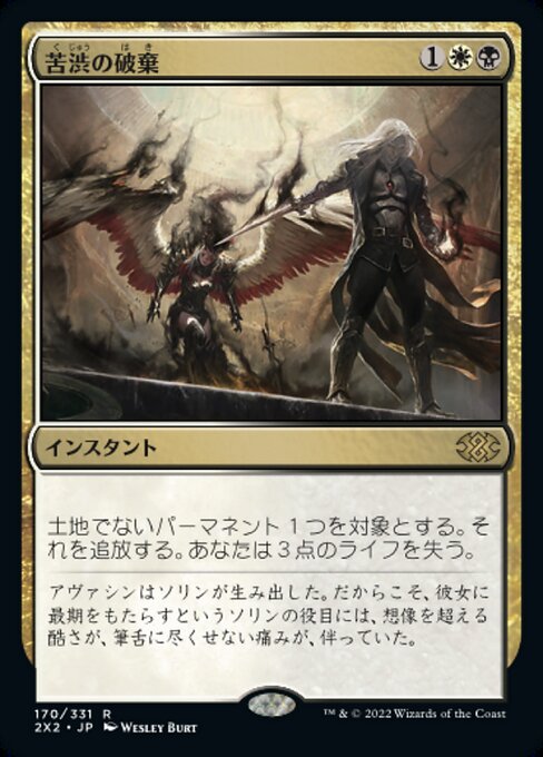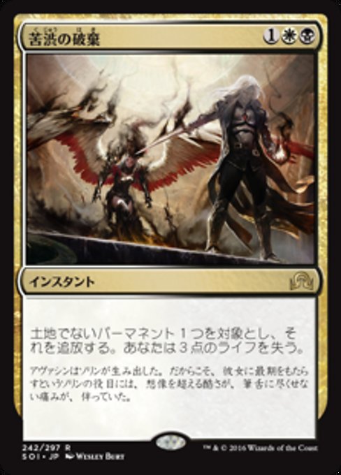 |  Variations : 1Parts— | 苦渋の破棄土地でないパーマネント1つを対象とする。それを追放する。あなたは3点のライフを失う。