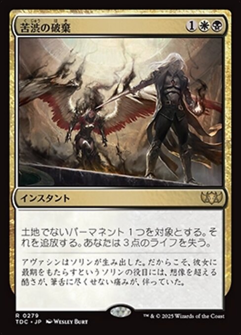 ![]() Variations : 1Parts— | 苦渋の破棄土地でないパーマネント1つを対象とする。それを追放する。あなたは3点のライフを失う。