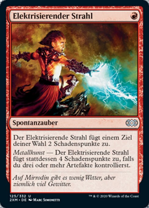|  Variations— Parts— | Galvanic BlastGalvanic Blast deals 2 damage to any target. Metalcraft — Galvanic Blast deals 4 damage instead if you control three or more artifacts.