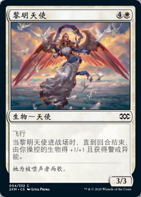 |  Variations— Parts— | Angel of the Dawn3 / 3 Flying When this creature enters, creatures you control get +1/+1 and gain vigilance until end of turn.