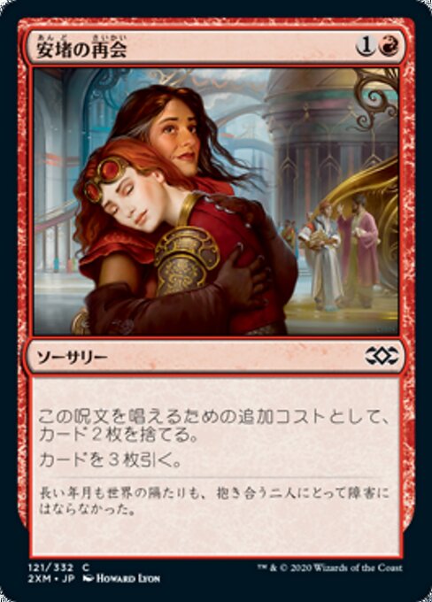|  Variations— Parts— | Retrouvailles cathartiquesEn tant que coût supplémentaire pour lancer ce sort, défaussez-vous de deux cartes. Piochez trois cartes.
