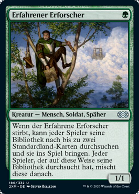 |  Variations— Parts— | Explorateur émérite1 / 1 Quand l'Explorateur émérite meurt, chaque joueur peut chercher dans sa bibliothèque jusqu'à deux cartes de terrain de base et les mettre sur le champ de bataille. Ensuite, chaque joueur qui a cherché dans sa bibliothèque de cette manière mélange sa bibliothèque.