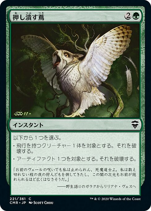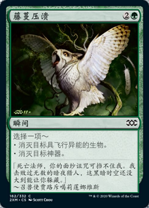 ![]() Variations— Parts— | 押し潰す蔦以下から1つを選ぶ。 • 飛行を持つクリーチャー1体を対象とする。それを破壊する。 • アーティファクト1つを対象とする。それを破壊する。