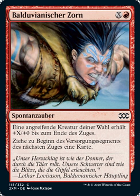 ![]() Variations— Parts— | 博都维之怒目标进行攻击的生物得+X/+0直到回合结束。 在下一个回合维持开始时,抓一张牌。