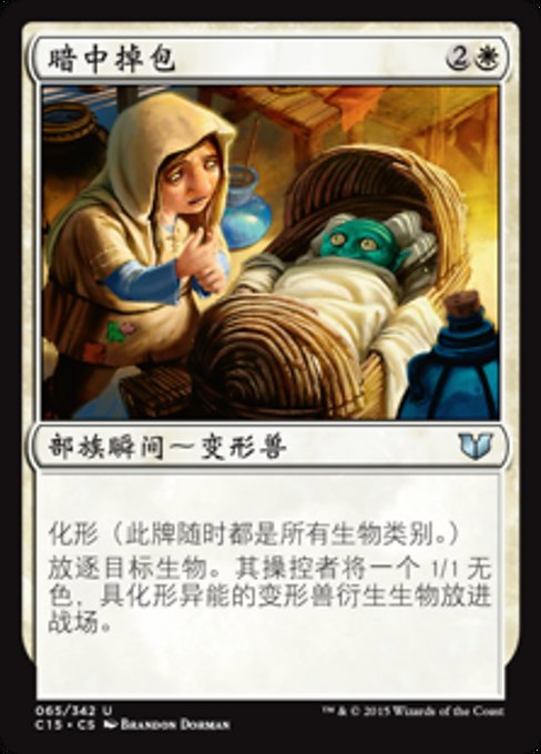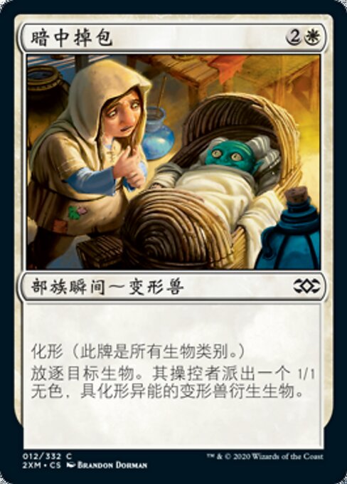 ![]() Variations— Parts— | 暗中掉包化形(此牌是所有生物类别。) 放逐目标生物。其操控者派出一个1/1无色,具化形异能的变形兽衍生生物。