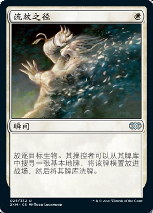 |  Variations— Parts— | 流放之径放逐目标生物。其操控者可以从其牌库中搜寻一张基本地牌,将该牌横置放进战场,然后将其牌库洗牌。