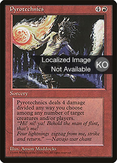 |  Variations— Parts— | PirotecniaPyrotechnics deals 4 damage divided as you choose among any number of targets.