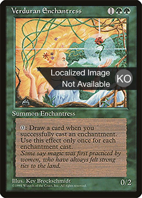 |  Variations— Parts— | 新緑の女魔術師0 / 2 Whenever you cast an enchantment spell, you may draw a card.