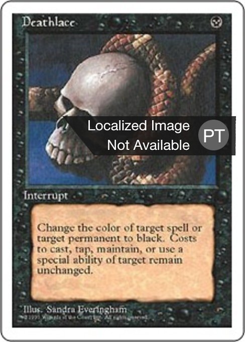 |  Variations— Parts— | DeathlaceTarget spell or permanent becomes black. (Mana symbols on that permanent remain unchanged.)