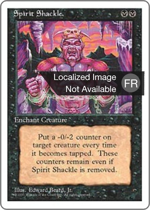 ![]() Variations— Parts— | Incatenare lo SpiritoEnchant creature Whenever enchanted creature becomes tapped, put a -0/-2 counter on it.