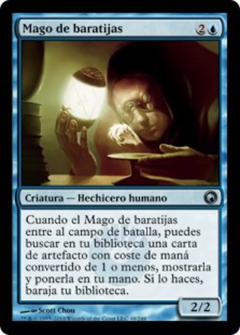 |  Variations— Parts— | Mago de baratijas2 / 2 Cuando el Mago de baratijas entre en juego, puedes buscar en tu biblioteca una carta de artefacto con coste de maná convertido de 1 o menos, mostrarla y ponerla en tu mano. Si lo haces, baraja tu biblioteca.