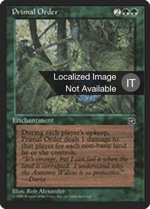 |  Variations— Parts— | Ordine PrimordialeAt the beginning of each player's upkeep, this enchantment deals damage to that player equal to the number of nonbasic lands they control.