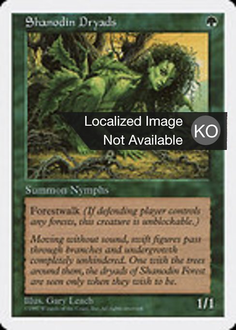 |  Variations— Parts— | シャノーディンのドライアド1 / 1 Forestwalk (This creature can't be blocked as long as defending player controls a Forest.)