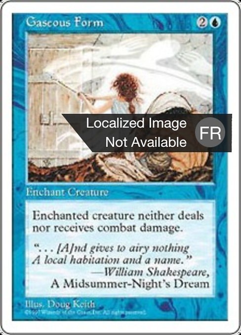 |  Variations— Parts— | Forma GasosaEnchant creature Prevent all combat damage that would be dealt to and dealt by enchanted creature.