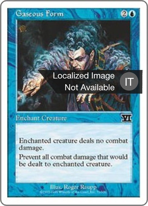 |  Variations— Parts— | Gaseous FormEnchant creature Prevent all combat damage that would be dealt to and dealt by enchanted creature.