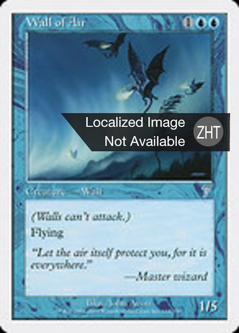 |  Variations— Parts— | Wall of Air1 / 5 Defender, flying (This creature can't attack, and it can block creatures with flying.)