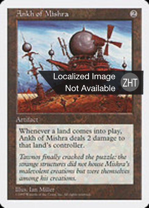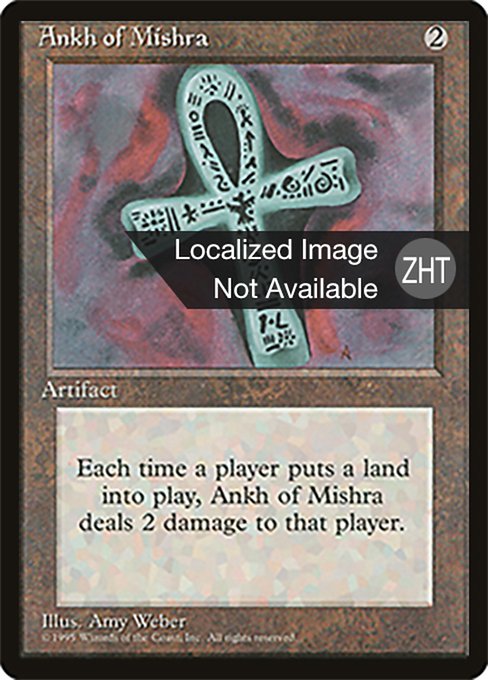 |  Variations— Parts— | Ankh of MishraWhenever a land enters, this artifact deals 2 damage to that land's controller.