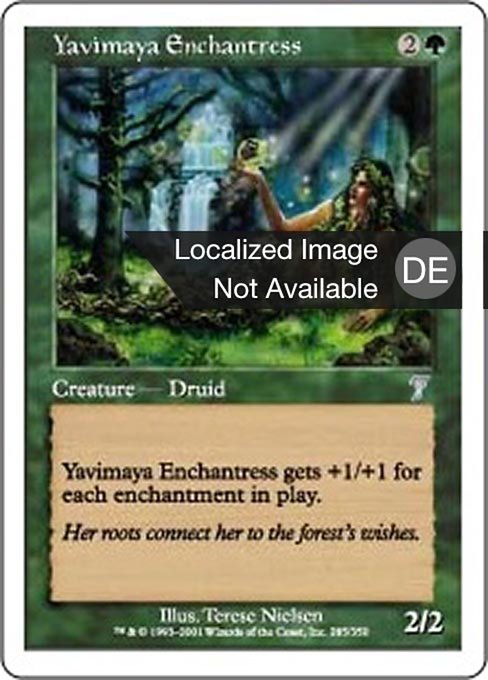 ![]() Variations : 1Parts— | Yavimaya Enchantress2 / 2 This creature gets +1/+1 for each enchantment on the battlefield.