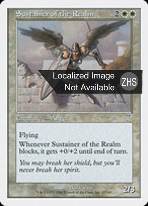 |  Variations : 1Parts— | Sustainer of the Realm2 / 3 Flying Whenever this creature blocks, it gets +0/+2 until end of turn.