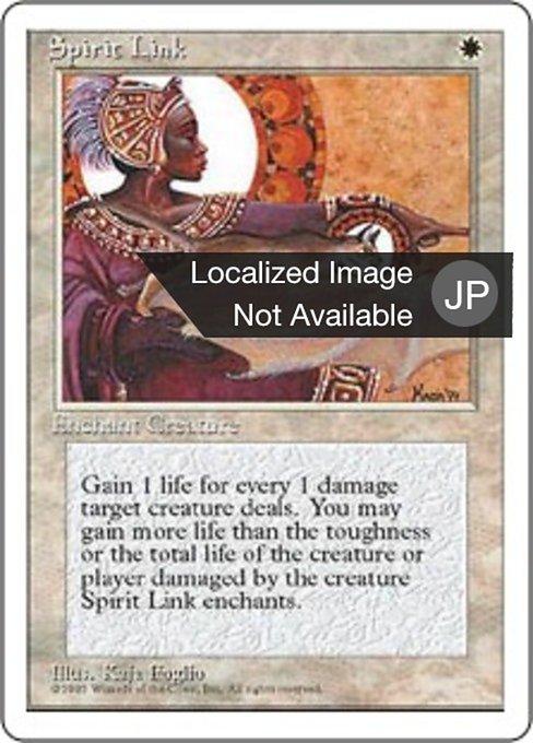 |  Variations— Parts— | 魂の絆Enchant creature (Target a creature as you cast this. This card enters attached to that creature.) Whenever enchanted creature deals damage, you gain that much life.