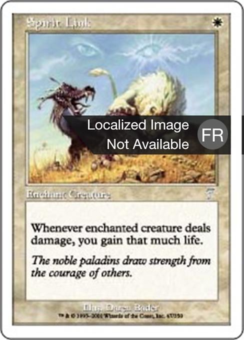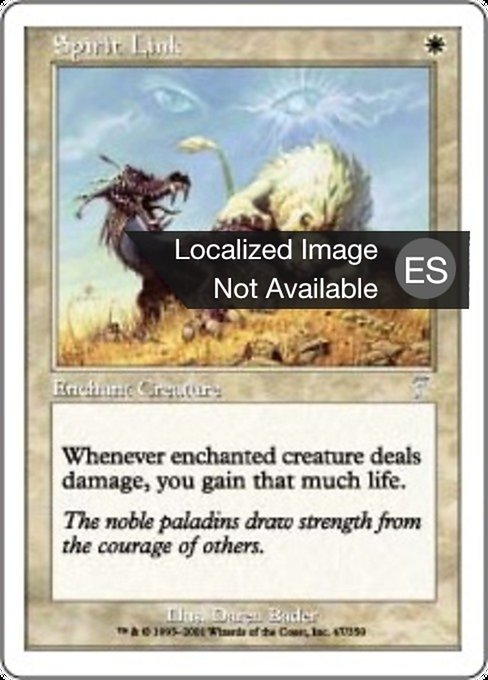Unlike the lifelink ability, the ability of Spirit Link is a triggered ability that goes on the stack and may be responded to. Notably, if the enchanted creature deals damage at the same time you’re dealt enough damage to reduce your life total to 0 or less, you’ll lose the game before you can gain any life.