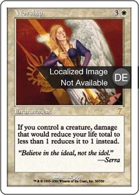 LegalitiesLegal Duel Penny Predh Legacy Modern Vintage Commander Premodern Oathbreaker Not Legal Brawl Future Pauper Alchemy Pioneer Historic Standard Timeless Gladiator Oldschool Standardbrawl Paupercommander RulingsWorship does not prevent damage. It causes some damage to be unable to lower your life total. So any damage rendered useless by Worship was still dealt and is counted by effects that track the amount of damage done to a player. In addition, Worship does not prevent loss of life, so loss of life bypasses Worship.