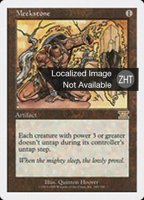 |  Variations— Parts— | MeekstoneCreatures with power 3 or greater don't untap during their controllers' untap steps.