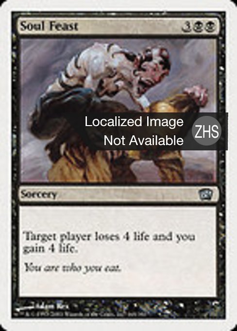 |  Variations— Parts— | Festin d'âmesLe joueur ciblé perd 4 points de vie et vous gagnez 4 points de vie.