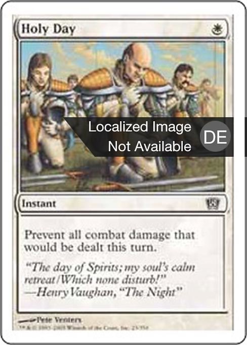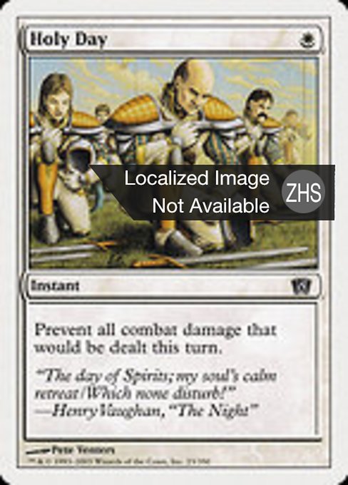![]() Variations— Parts— | 聖なる日Prevent all combat damage that would be dealt this turn.