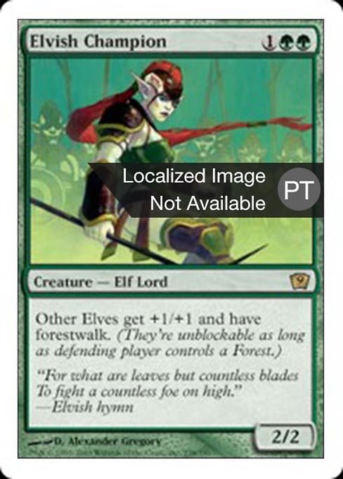 ![]() Variations— Parts— | Campeão Élfico2 / 2 Todos os Elfos recebem +1/+1 e têm travessia de floresta. (Eles não podem ser bloqueados desde que o jogador defensor controle uma Floresta.)