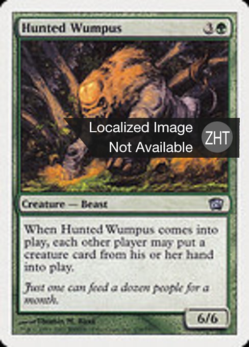 ![]() Variations— Parts—  | Wumpus Caçado6 / 6 Quando Wumpus Caçado entra em jogo, cada um dos outros jogadores pode colocar em jogo um card de criatura de sua própria mão.